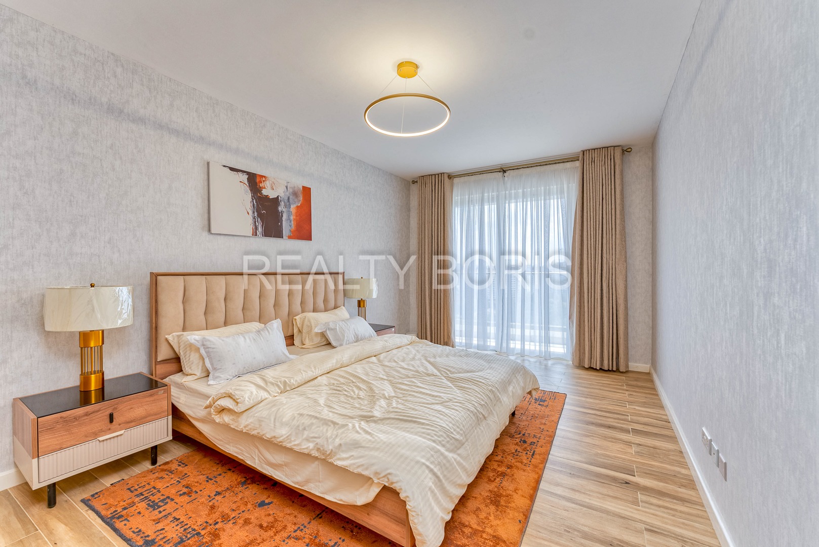 The apartment features spacious interiors with contemporary finishes, large windows that invite abundant natural light, and well-designed living areas that create an inviting atmosphere for both relaxation and entertainment. The master bedroom is thoughtfully designed with an en-suite bathroom featuring a luxurious bathtub, providing a peaceful retreat after a long day.